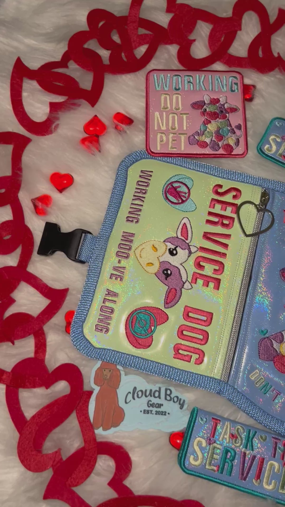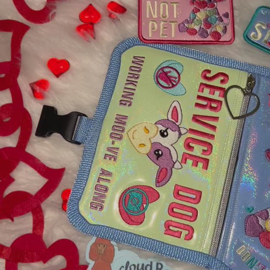 A playful, candy-bright service dog set featuring an adorable pastel cow design with strong boundary messaging. Fun, friendly visuals paired with clear working text make this set both charming and highly functional.